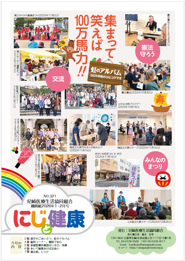 機関紙「にじと健康」は、医療・介護・健康レシピ・かんたん体操などお役立情報、活動紹介を発信中です!